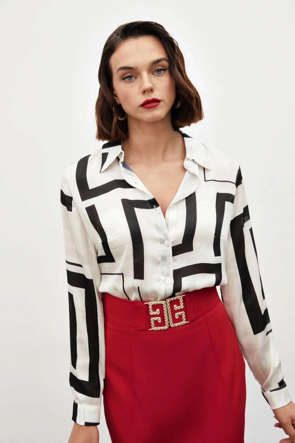 Aksesuarlı Klasik Gömlek - Ekru