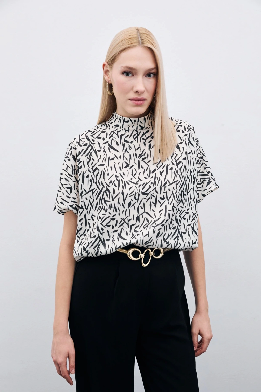 Aksesuarlı Salaş Bluz - Siyah