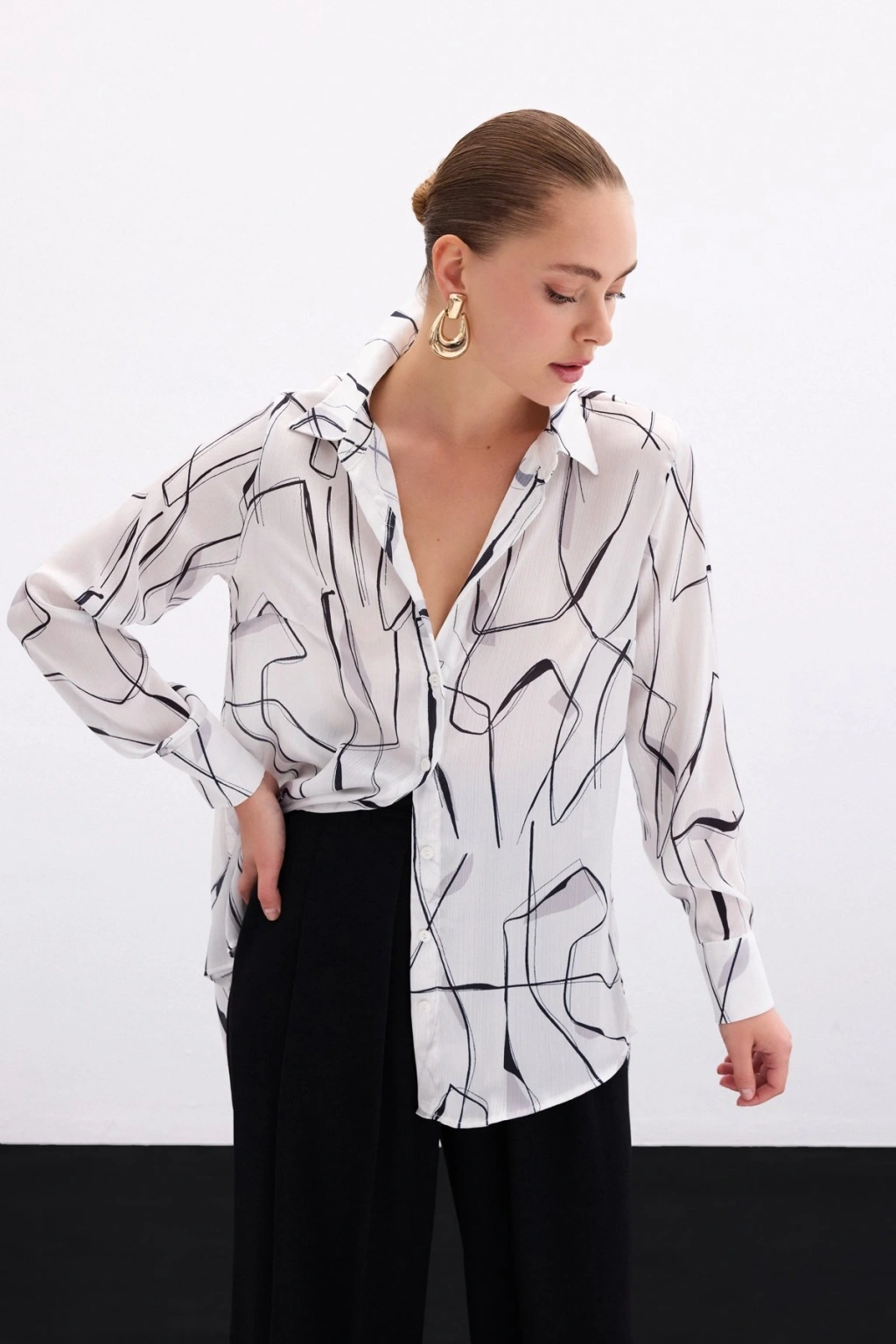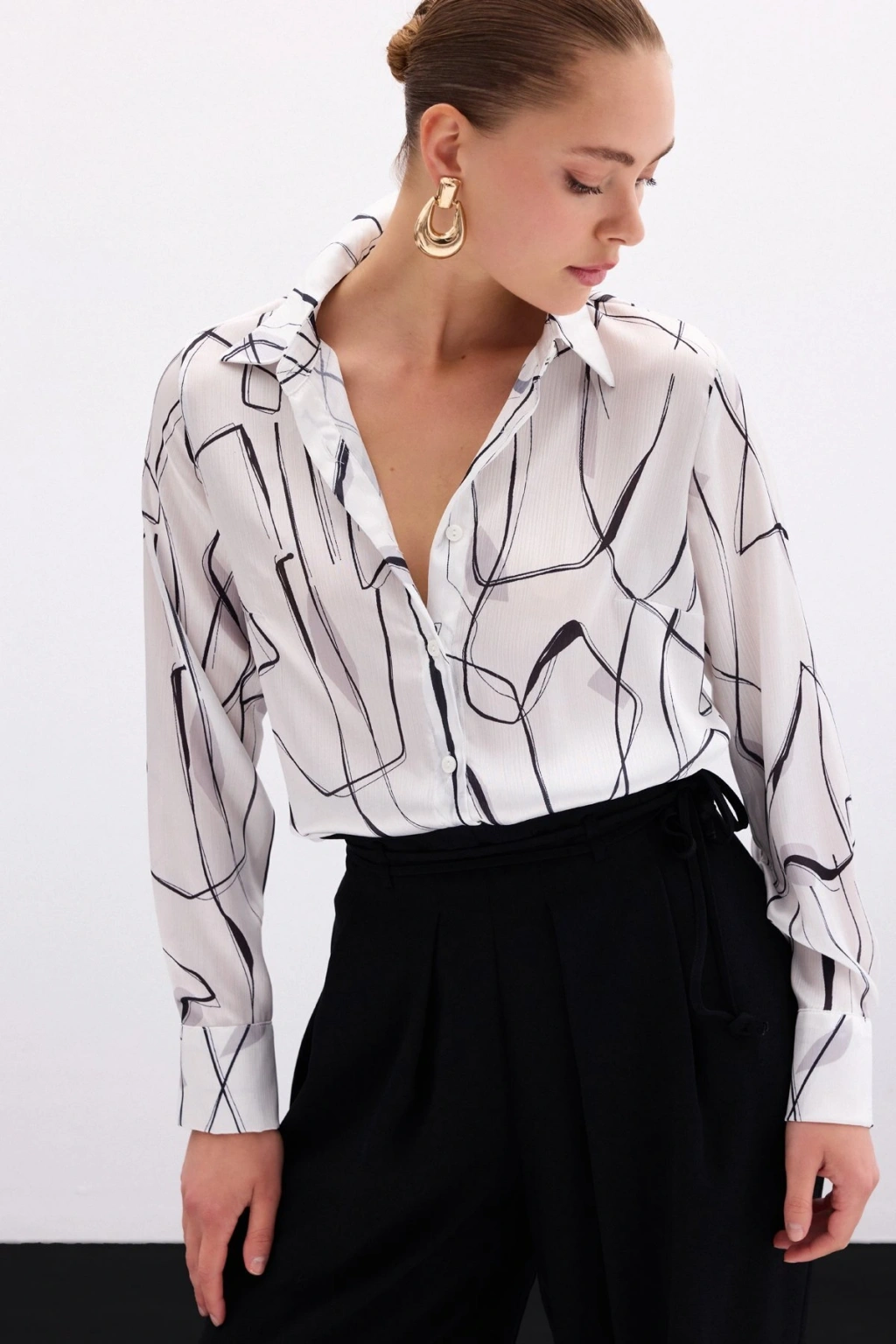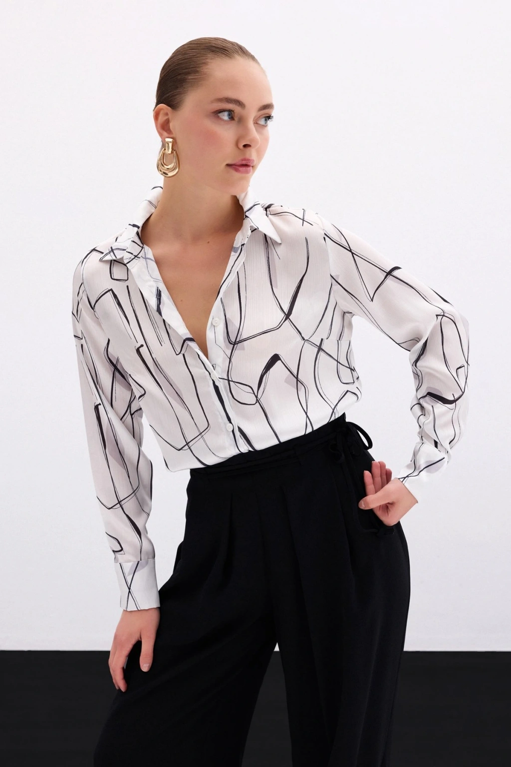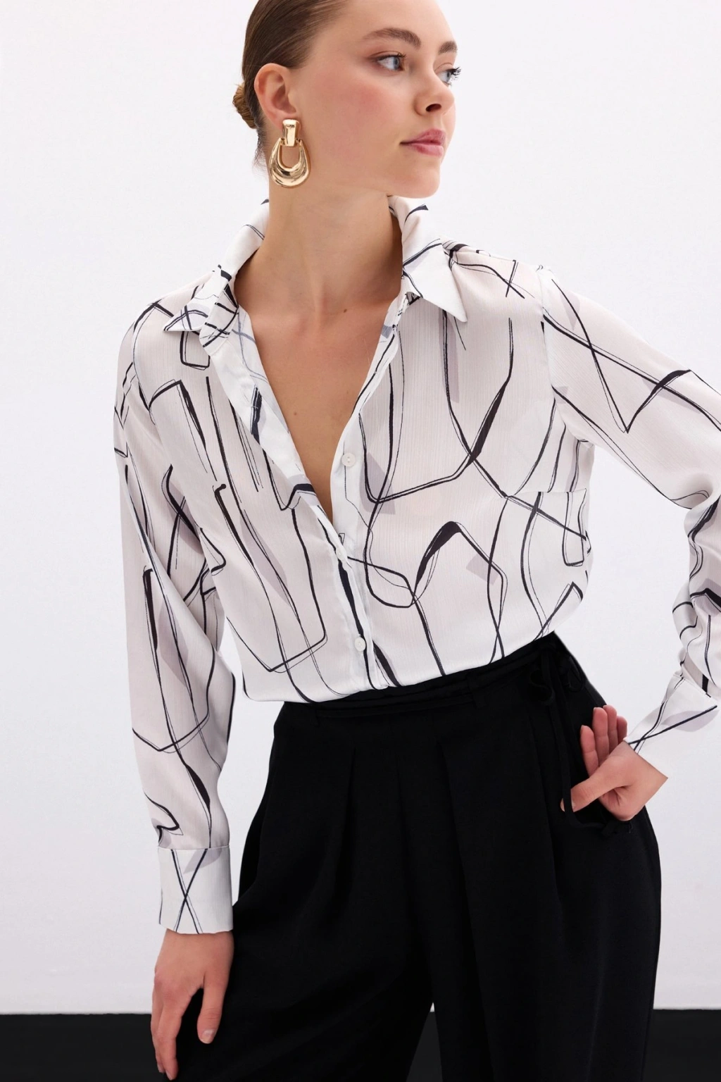 Aksesuarlı Klasik Gömlek - Ekru