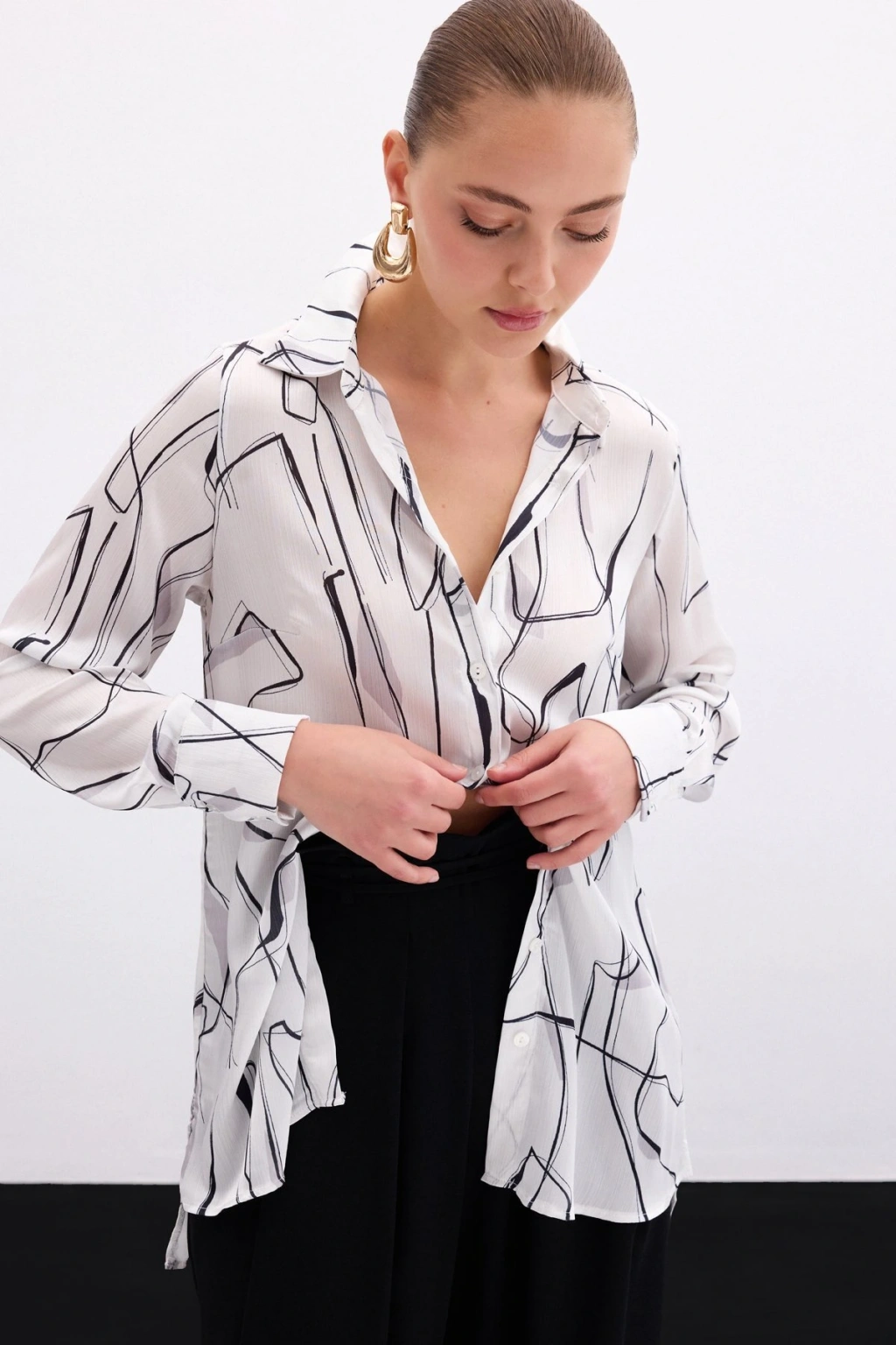 Yırtmaç Detaylı Gömlek - Ekru