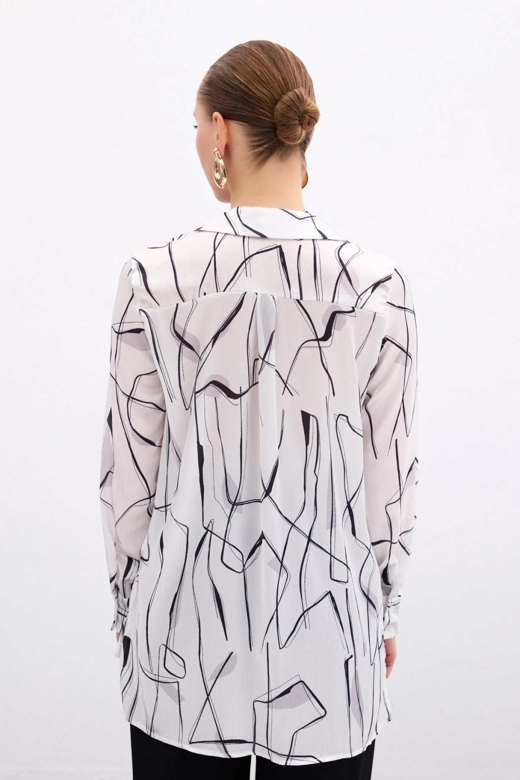 Desenli Fular Yaka Gömlek - Kahve
