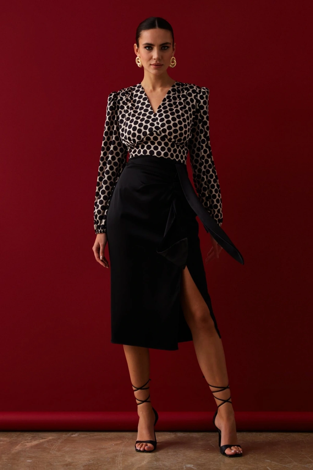 Kesik Detaylı Saten Etek - Siyah