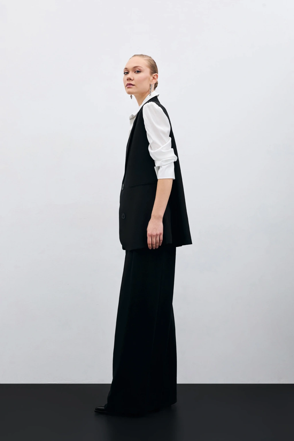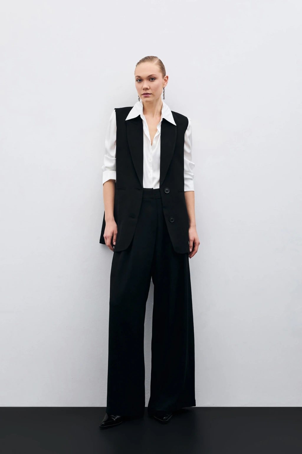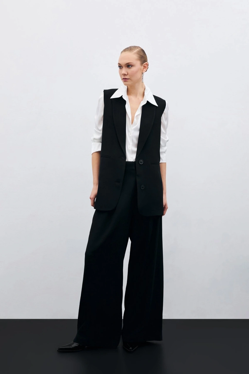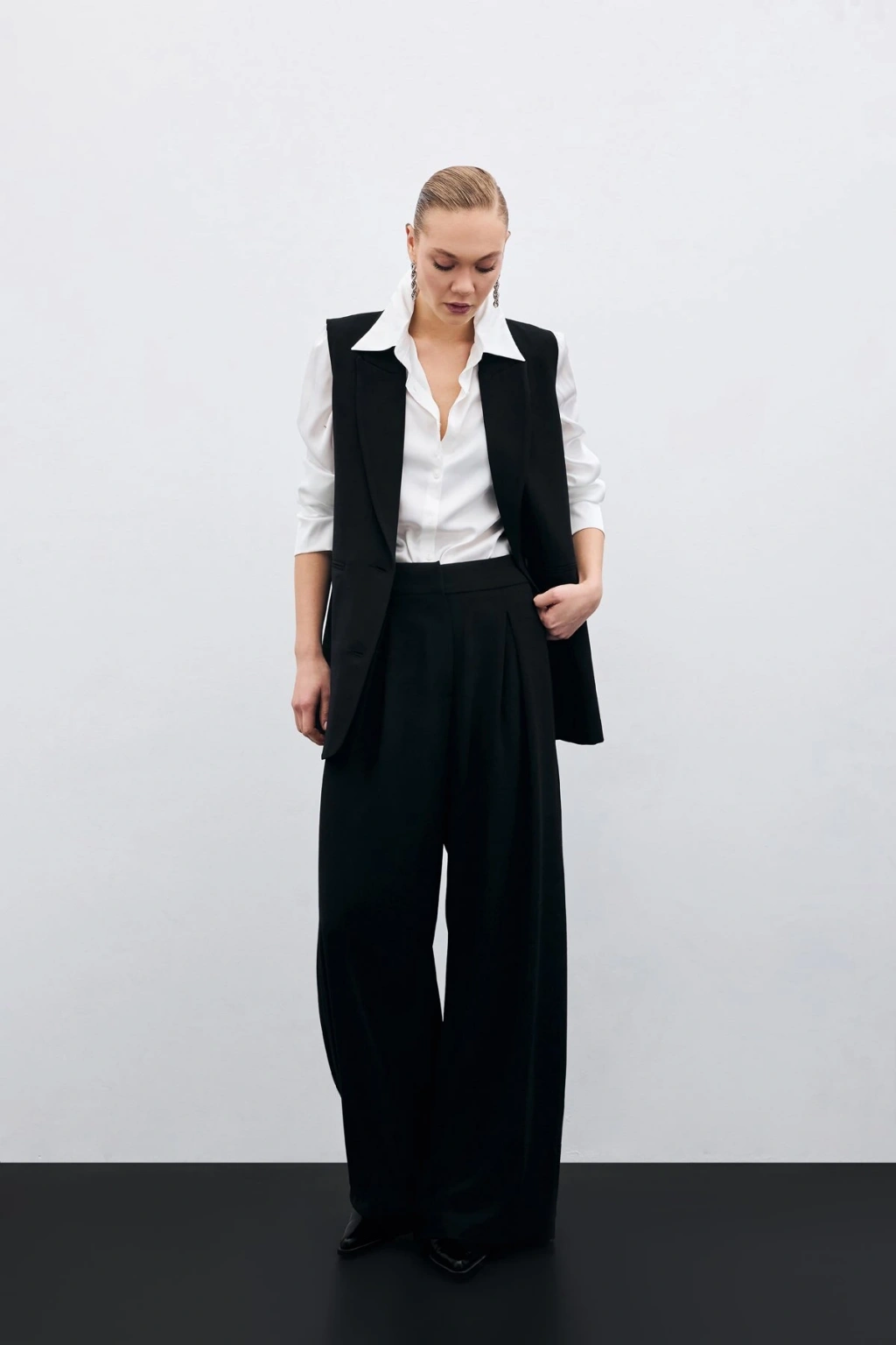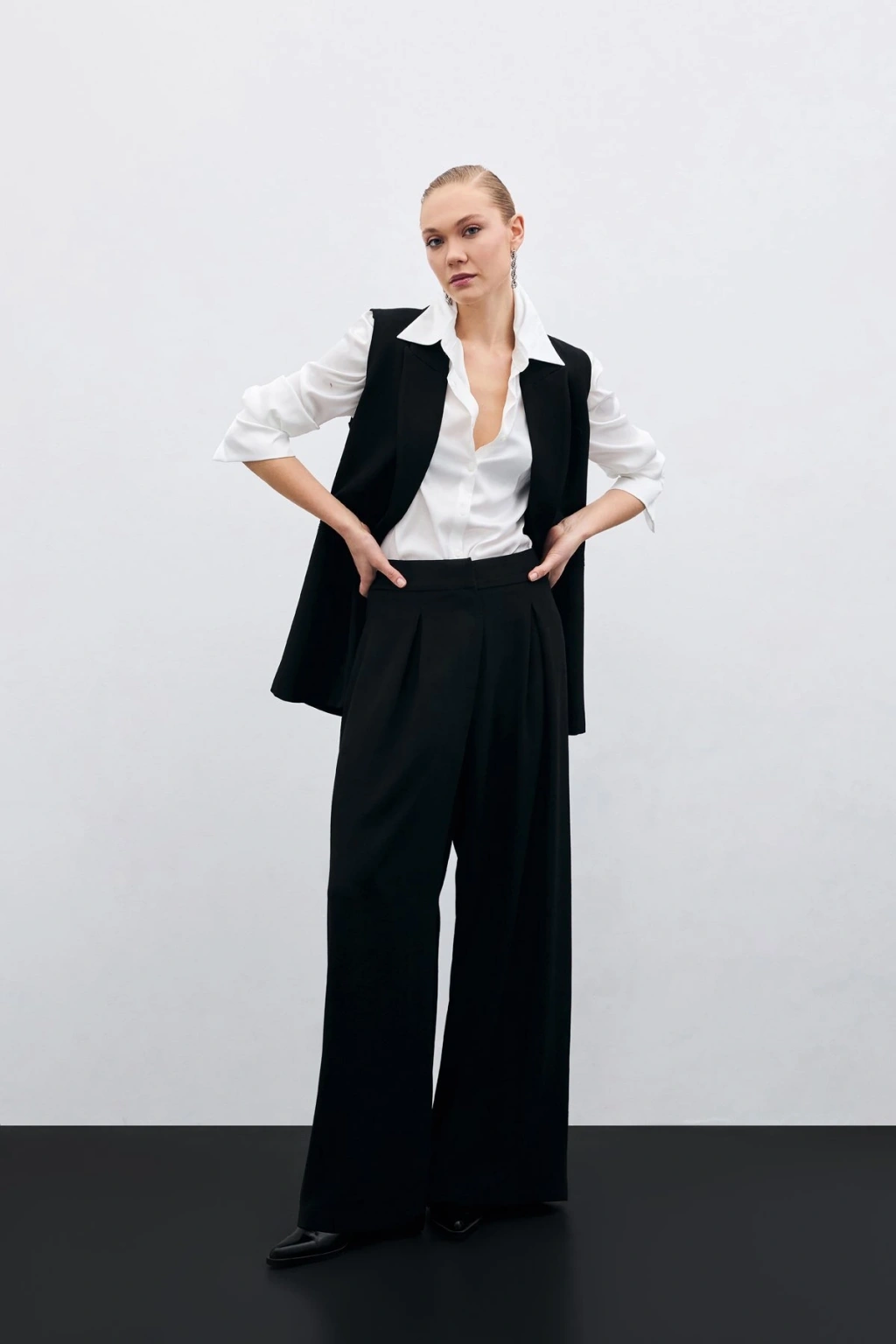 Yüksek Bel Bol Paça Pantolon - SİYAH