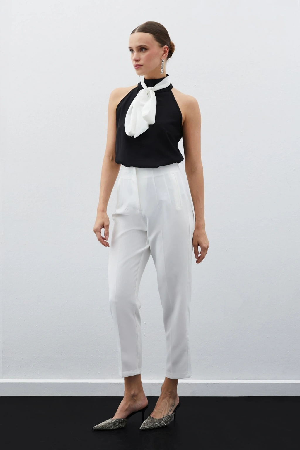 Yüksek Bel Pensli Pantolon - Ekru