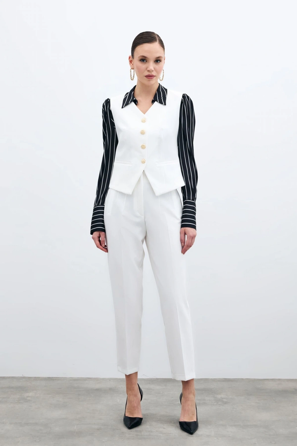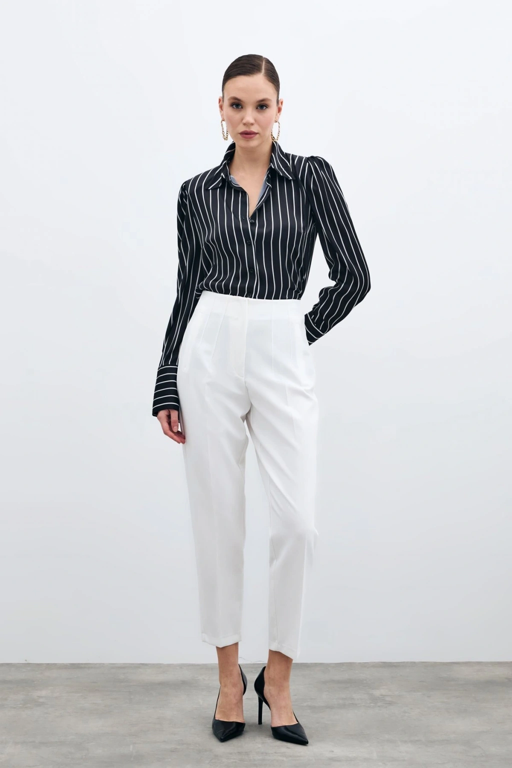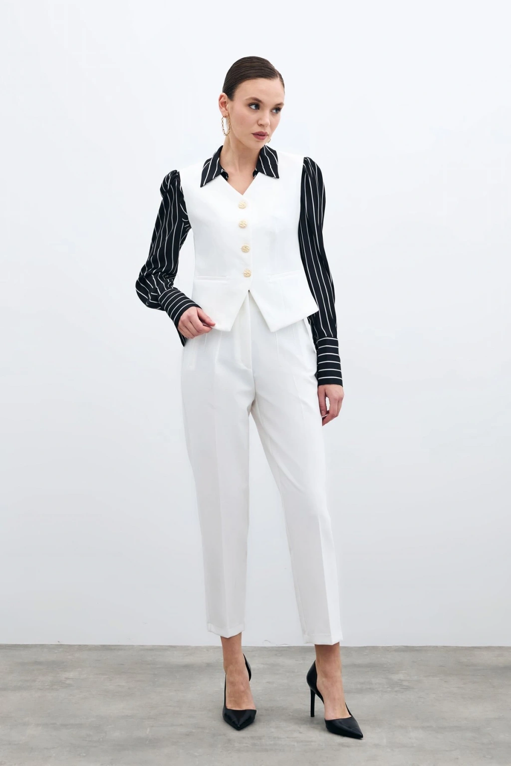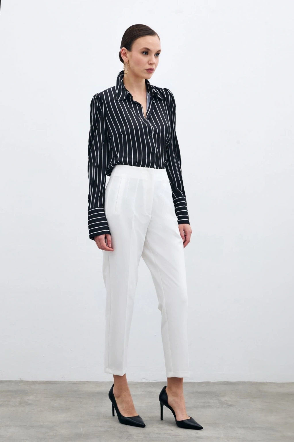 Yüksek Bel Pensli Pantolon - Ekru