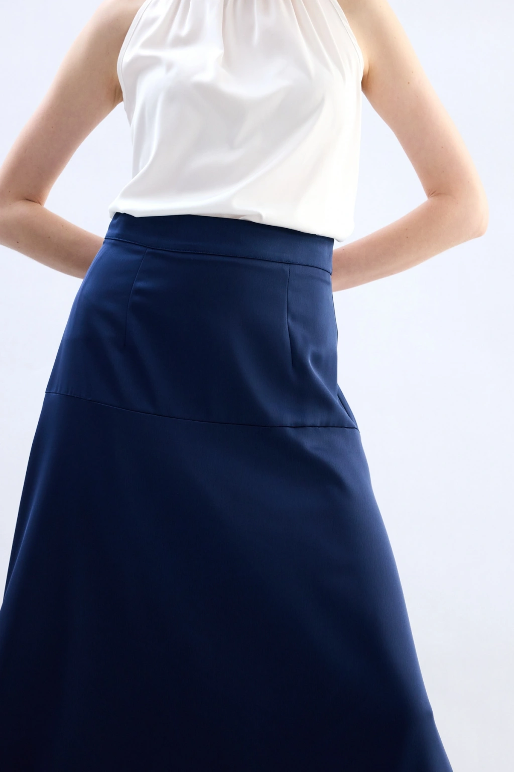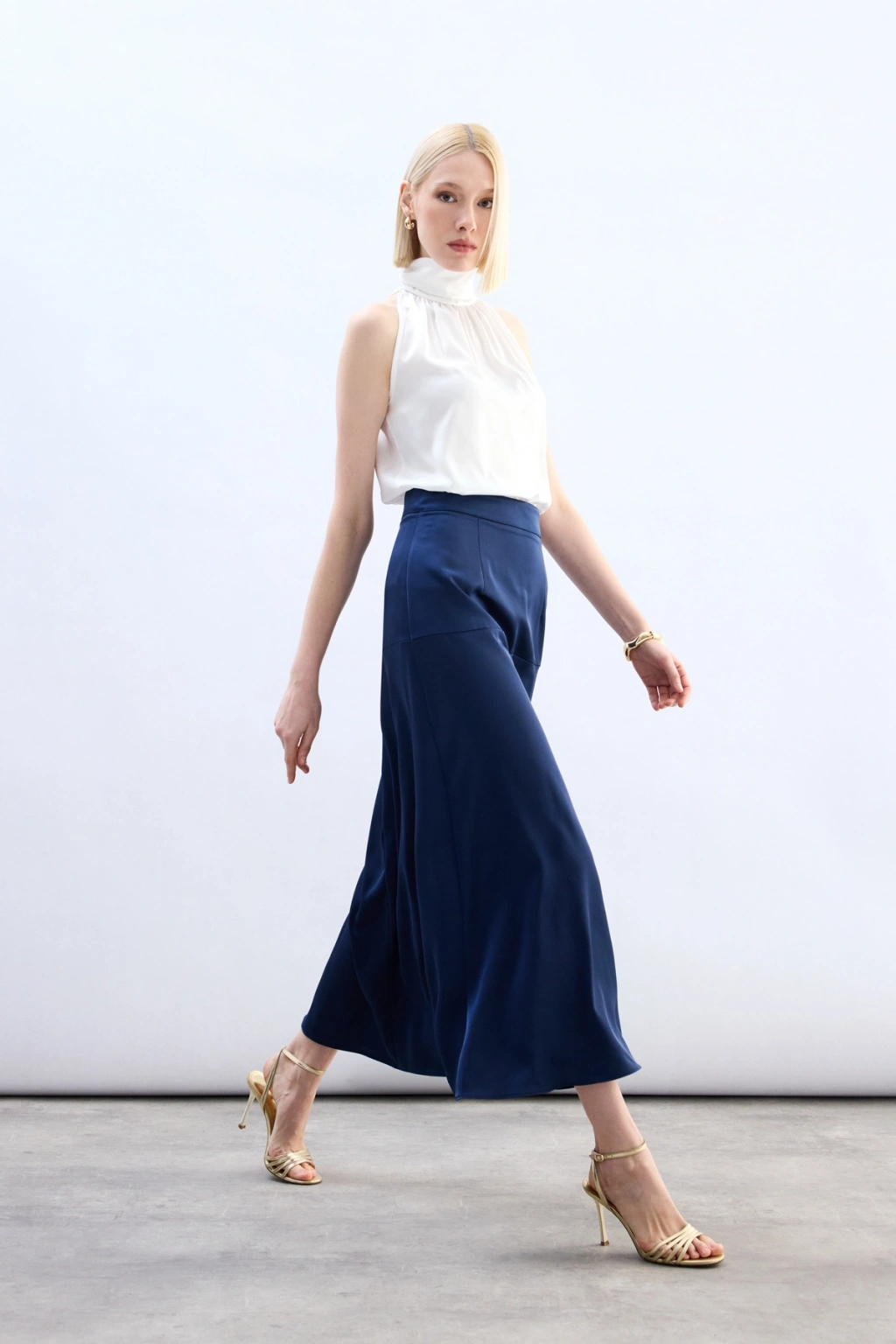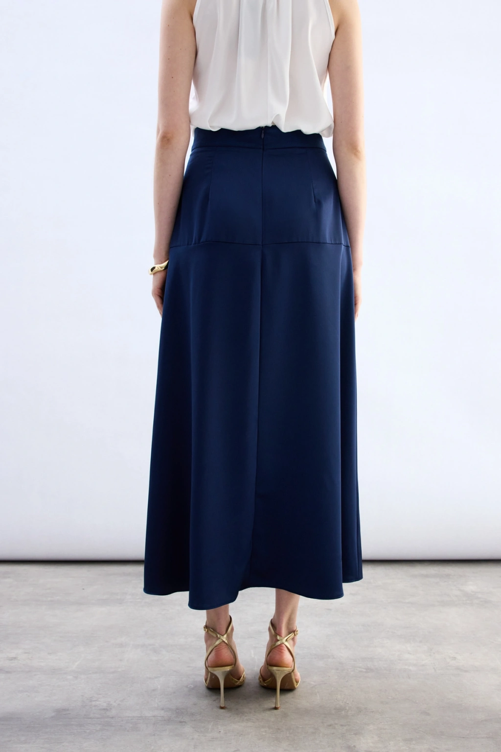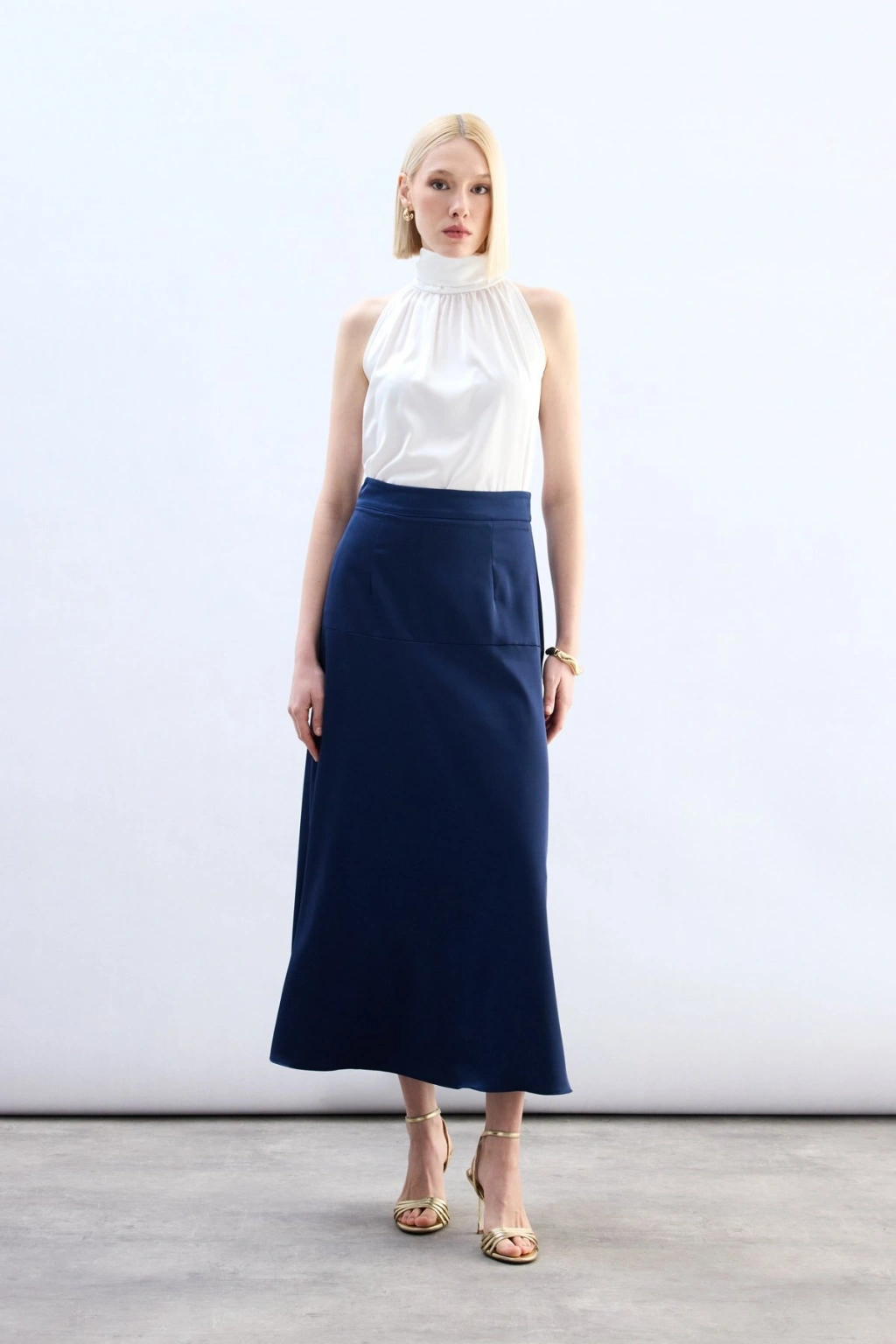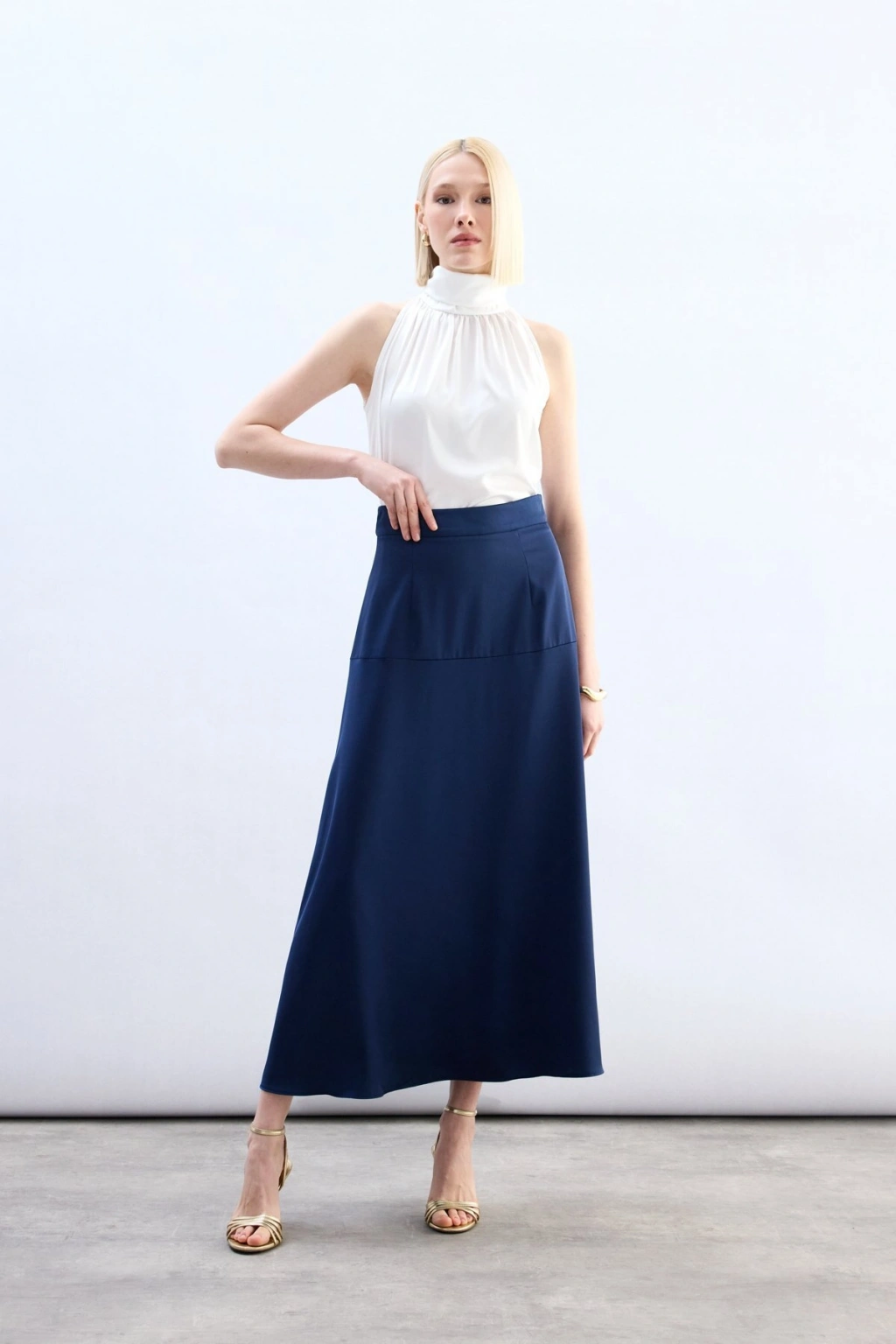 Yüksek Bel Saten Etek - Lacivert