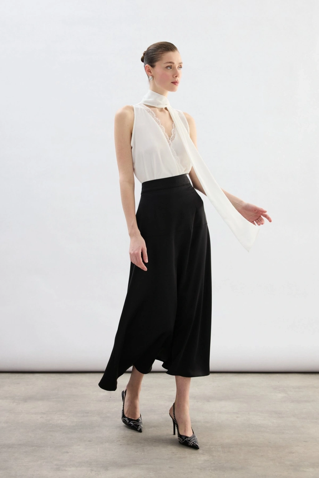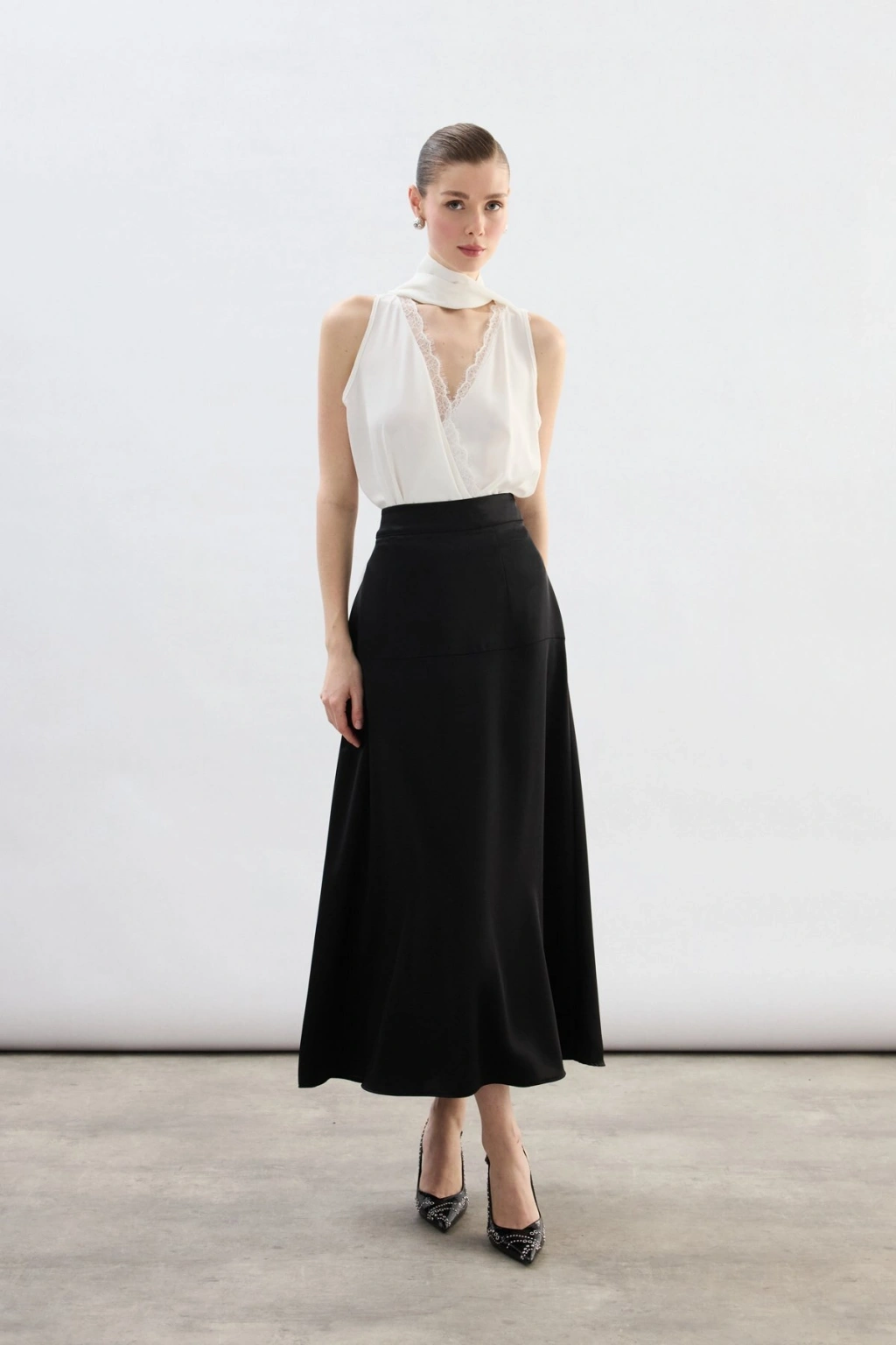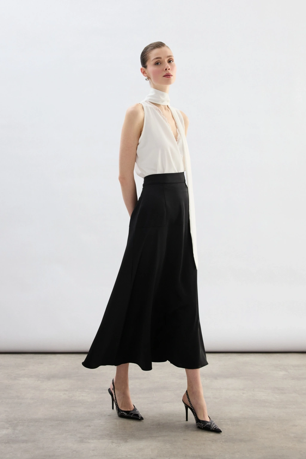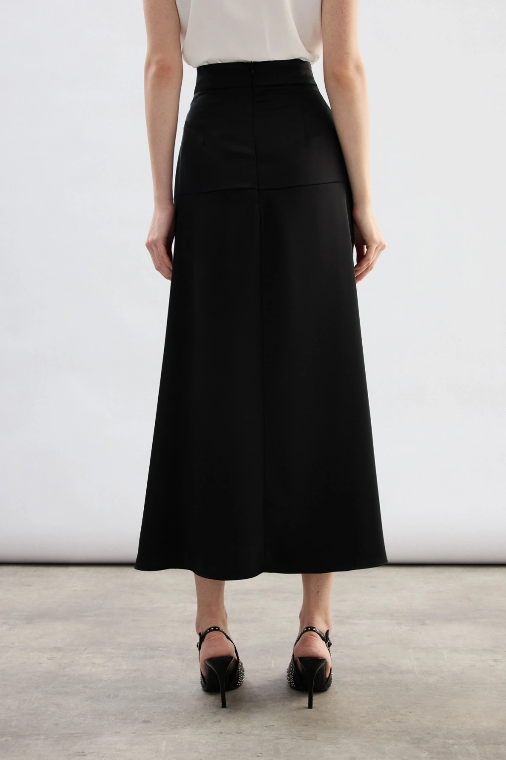 Aksesuar Kuşaklı Yırtmaçlı Etek - Siyah