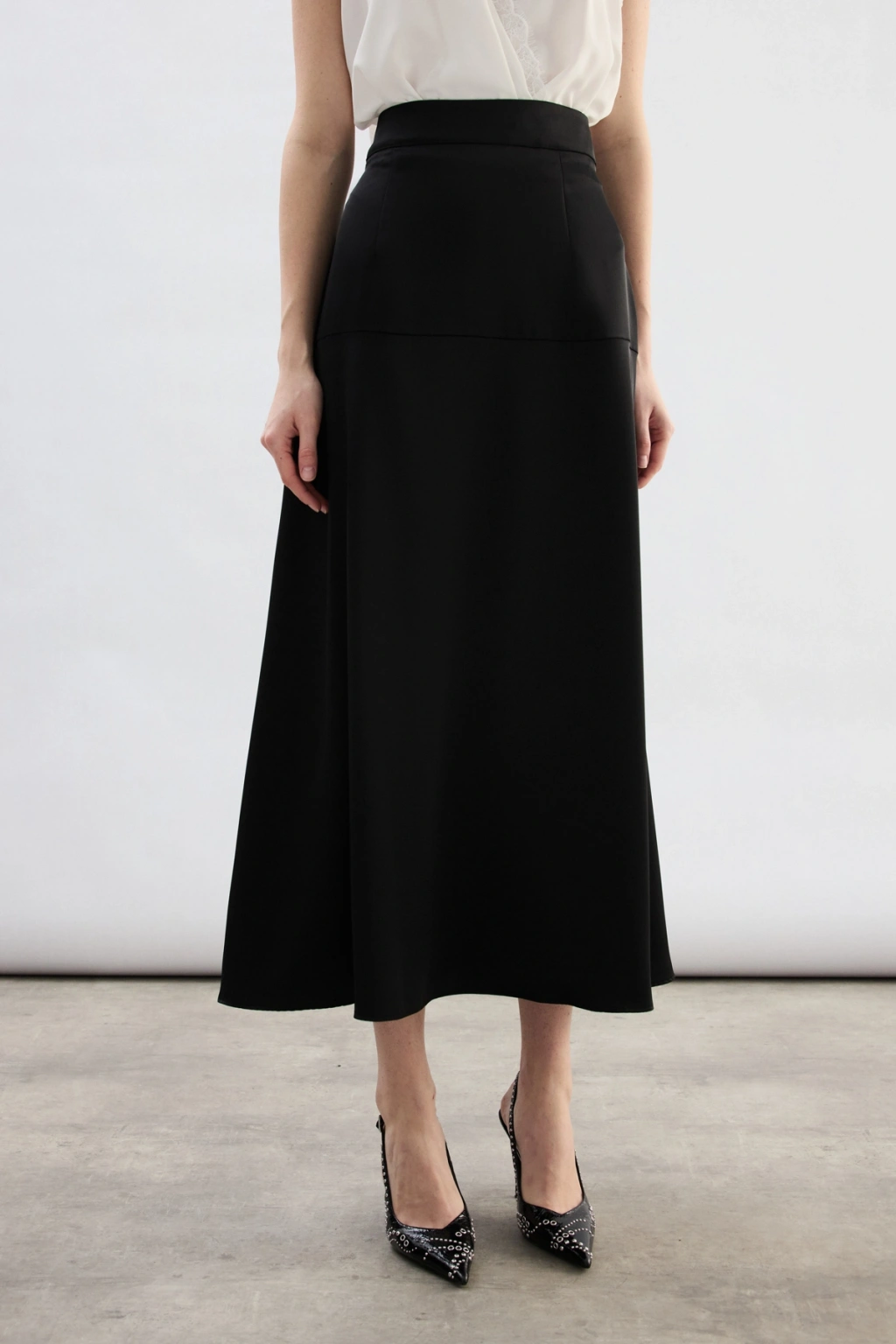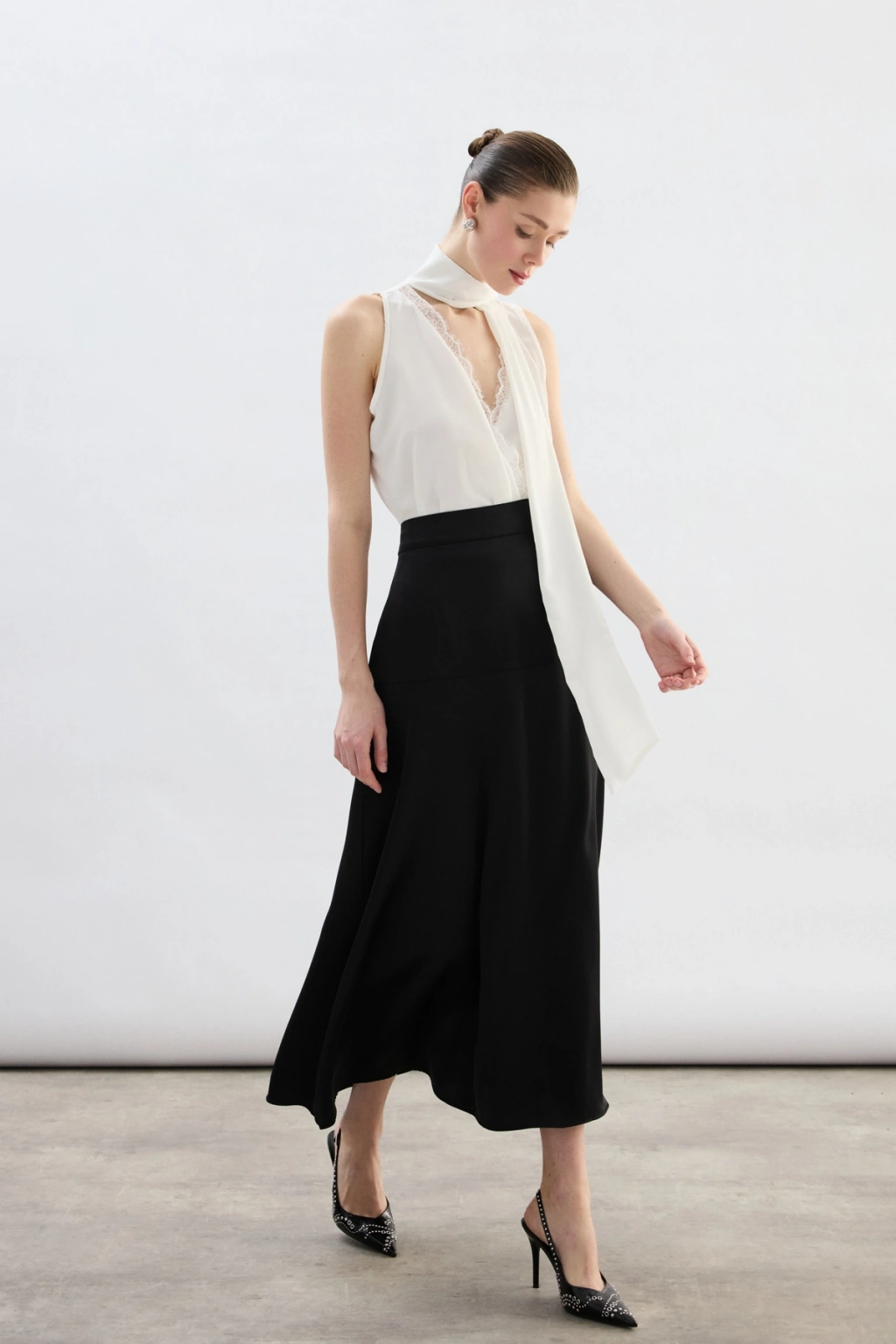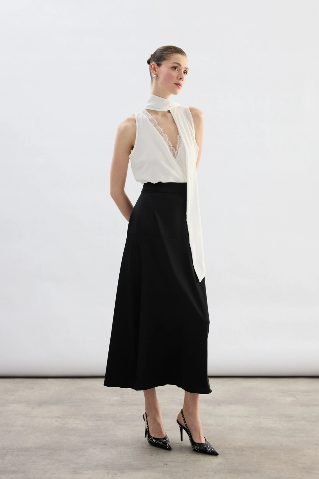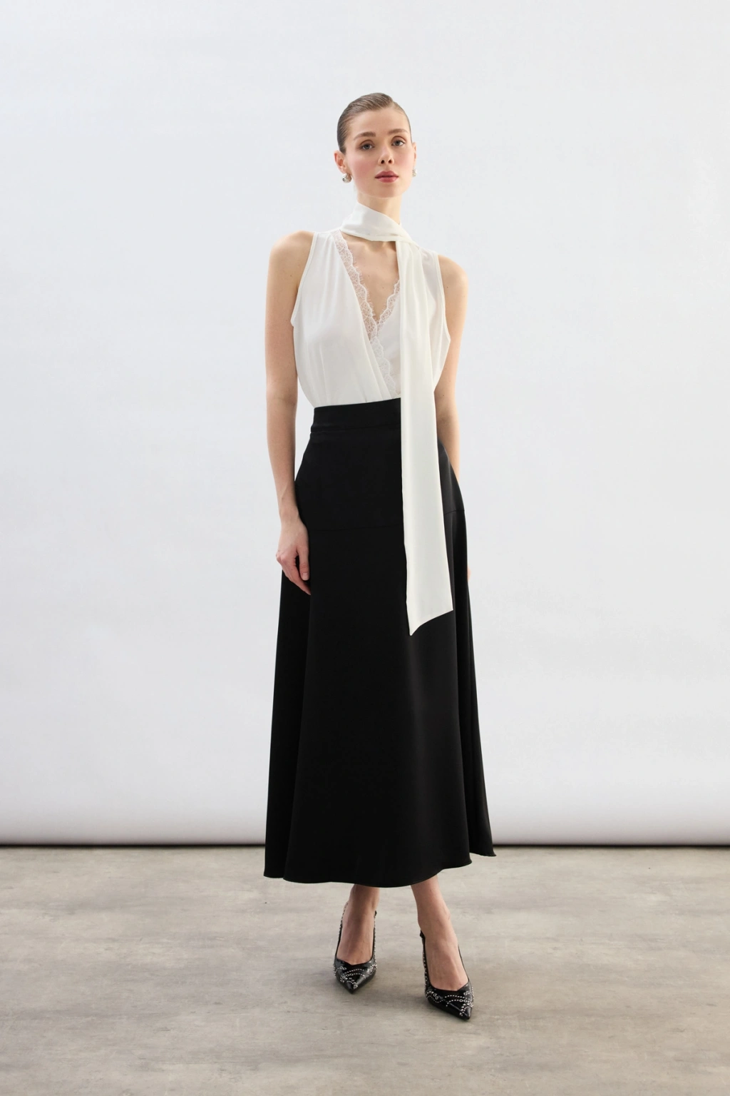 Aksesuar Kuşaklı Yırtmaçlı Etek - Siyah