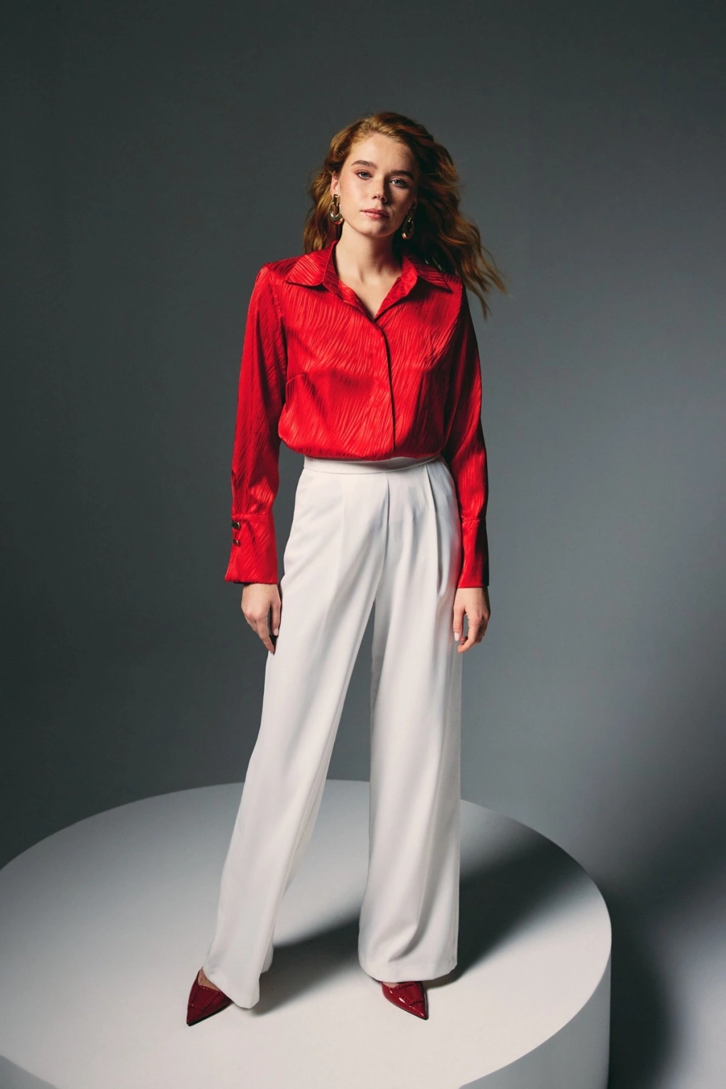 Çiçek Desenli Fularlı Gömlek - Pudra