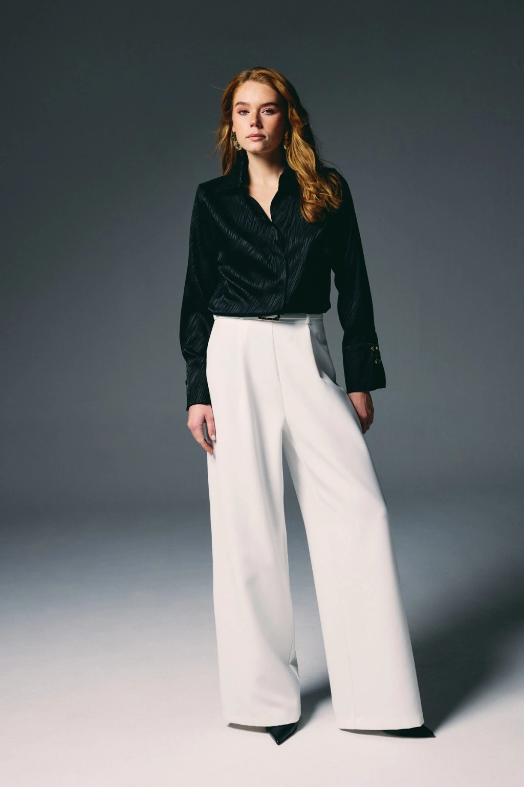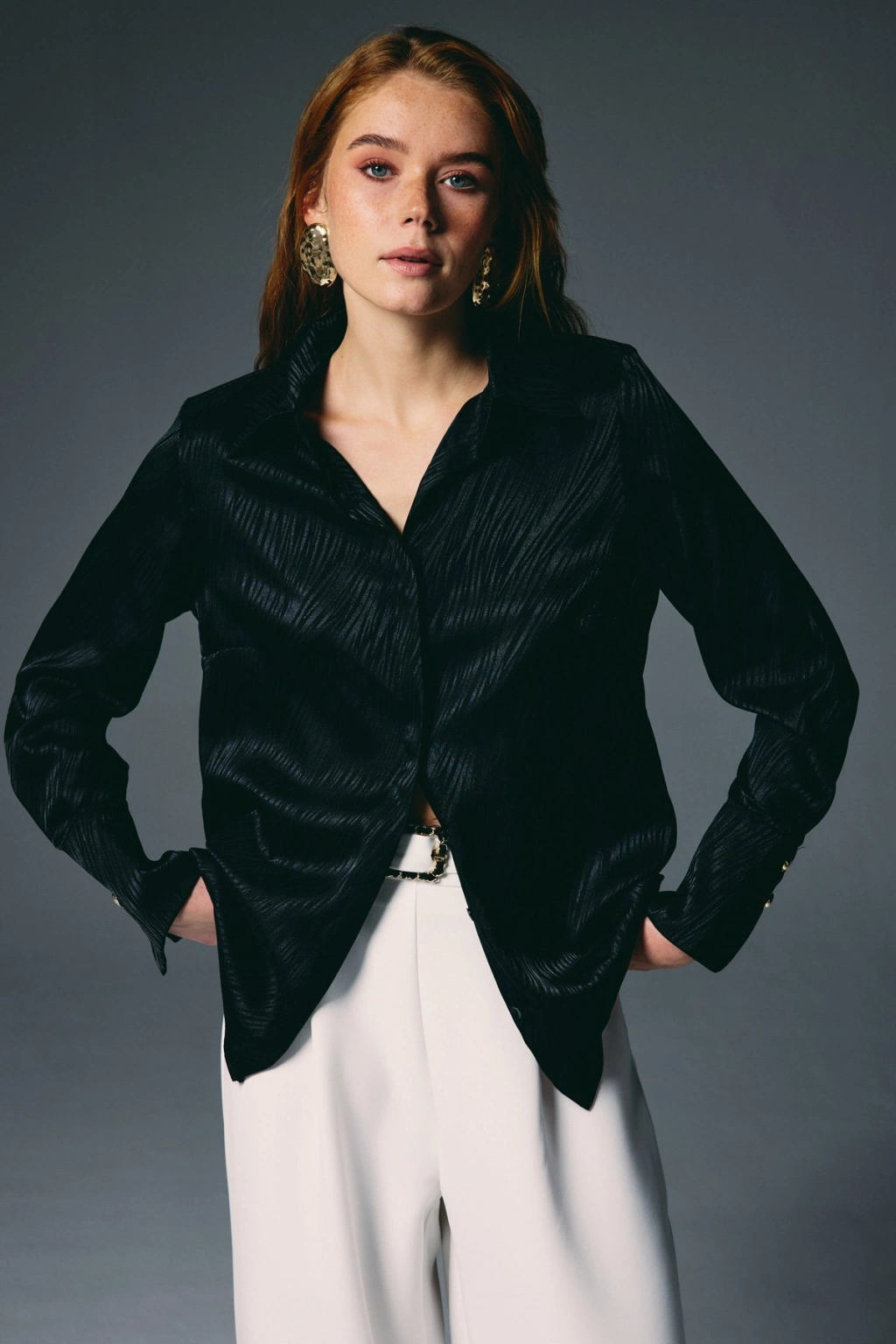 Payet Detaylı Saten Gömlek - SİYAH