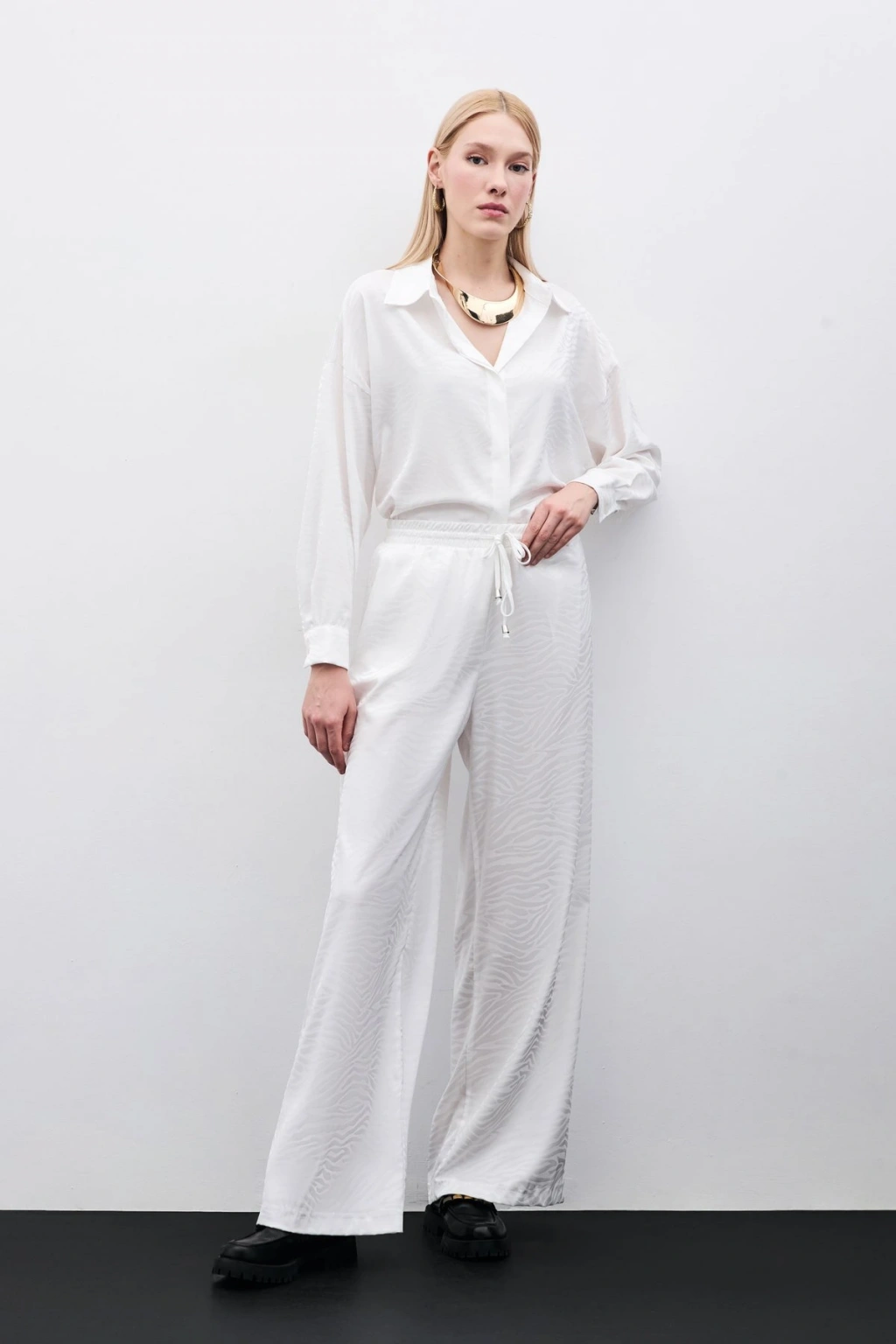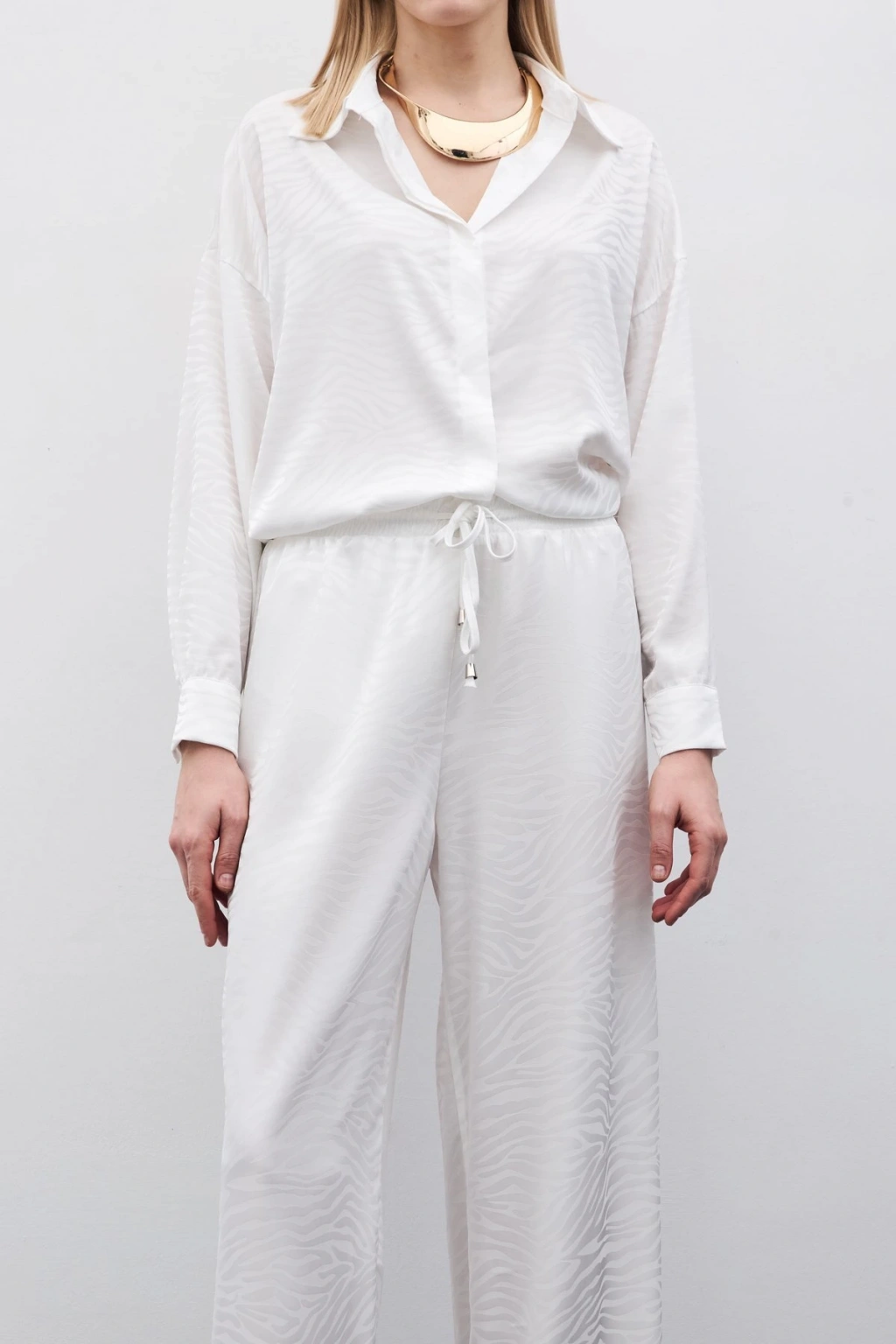 Zebra Desenli Salaş Pantolon - Ekru