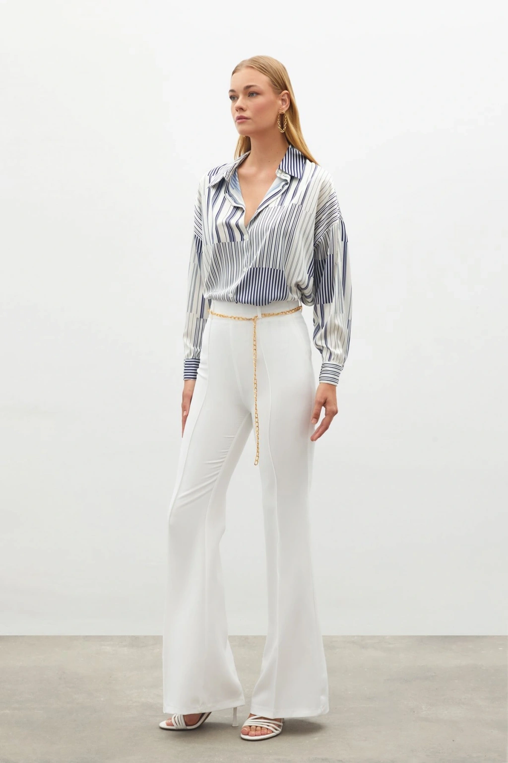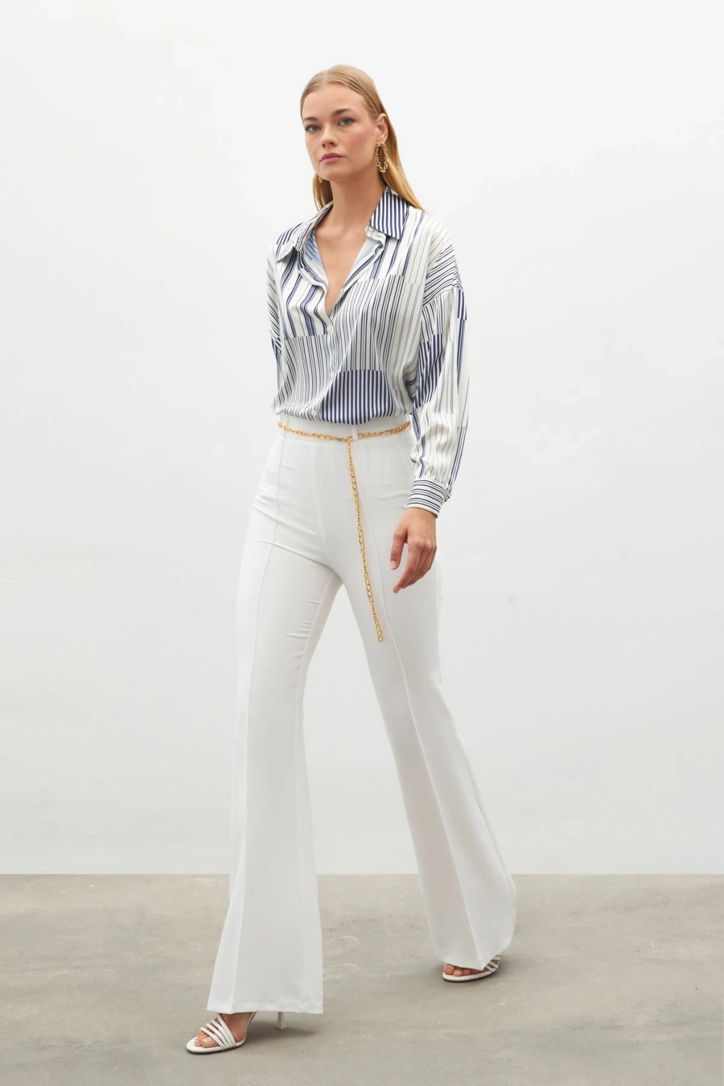 Zincir Kemer İspanyol Paça Pantolon Ekru